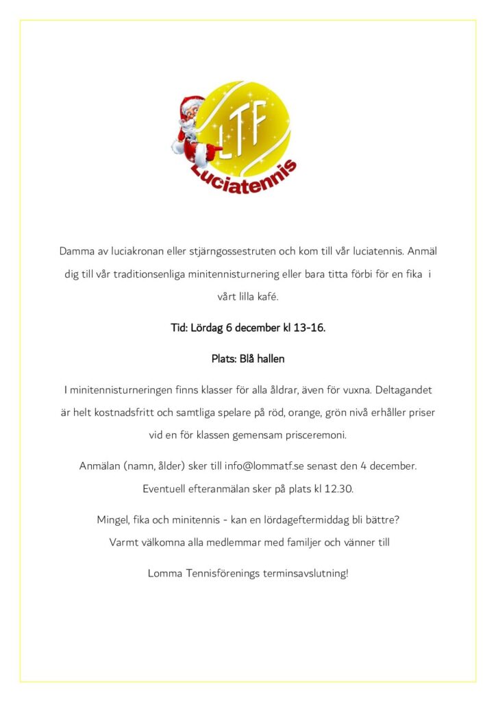 Det var återigen stor uppslutning kring vår årliga Luciatennis lördagen den 9 december. Minitennisturneringen lockade stora som små till Blå hallen och lussekatterna i fiket gick även i år åt som smör i solsken. Här följer några bilder från arrangemanget.